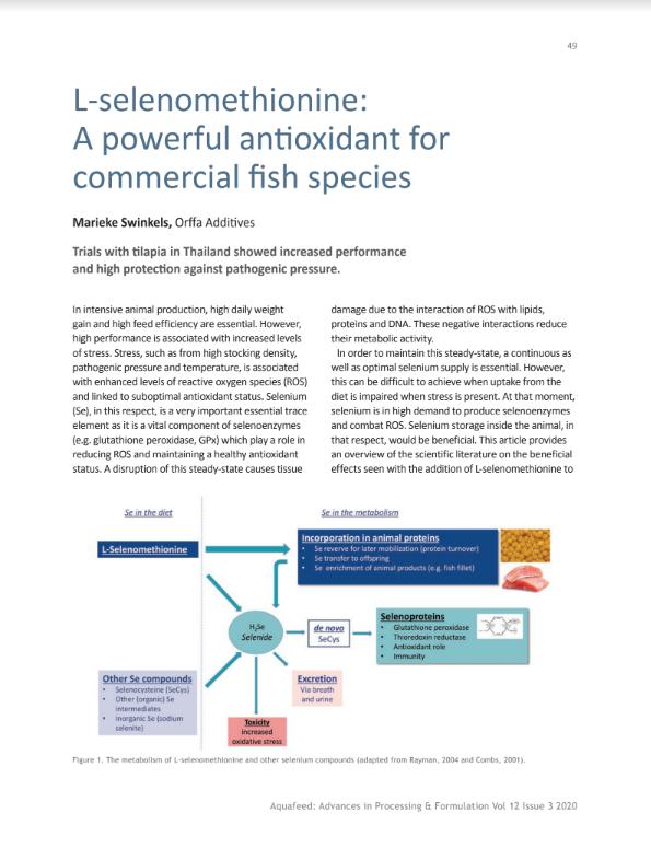 L-selenomethionine: A powerful antioxidant for use in commercial fish culture