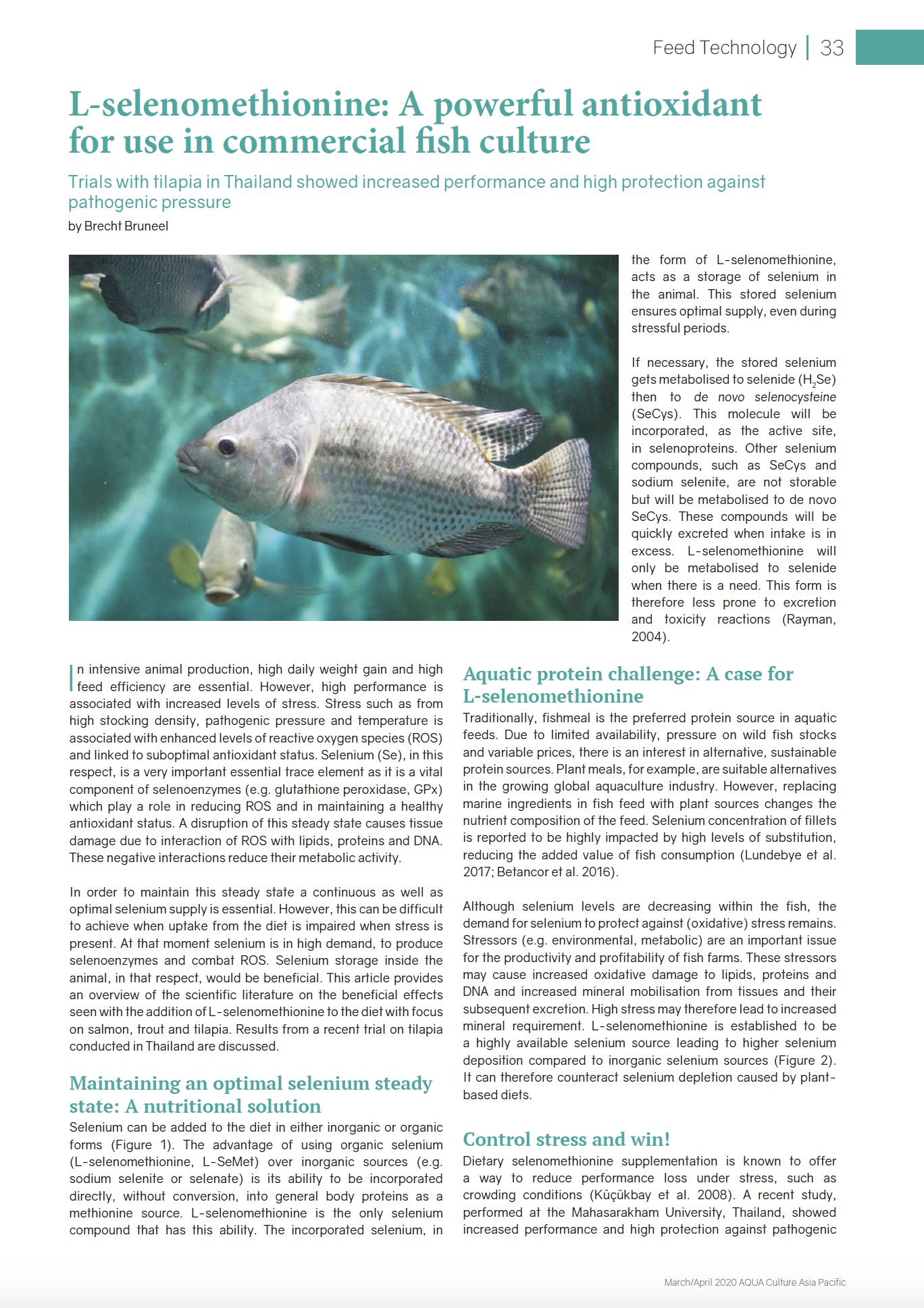 L-selenomethionine: A powerful antioxidant for commercial fish culture