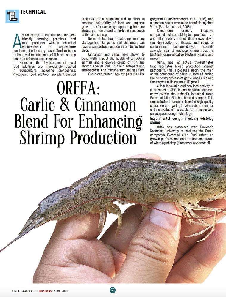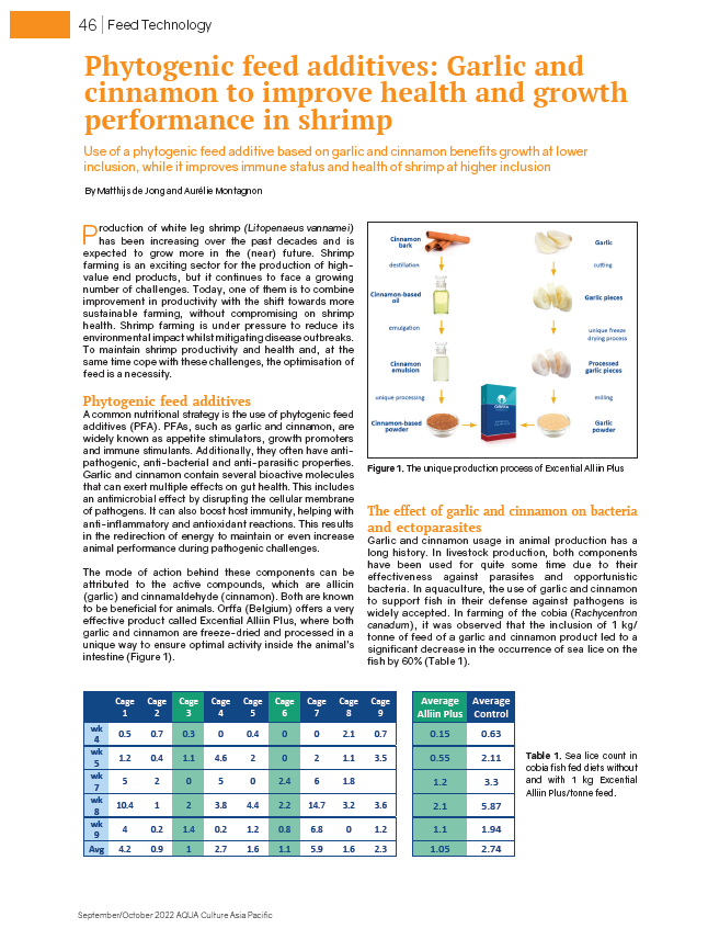 Use of a phytogenic feed additive based on garlic and cinnamon benefits growth at lower inclusion, while it improves immune status and health of shrimp at higher inclusion.0e1d35c8-dda2-46c9-8fa1-b738e8fe1649, 96b0fedb-74b2-4bf5-87ea-3759b48f4217 46dfa1b8-3547-4dc1-8395-d7aa6000c08c 677dbd38-0773-44d8-aa65-d2106819dd4e46dfa1b8-3547-4dc1-8395-d7aa6000c08c202210042022 -