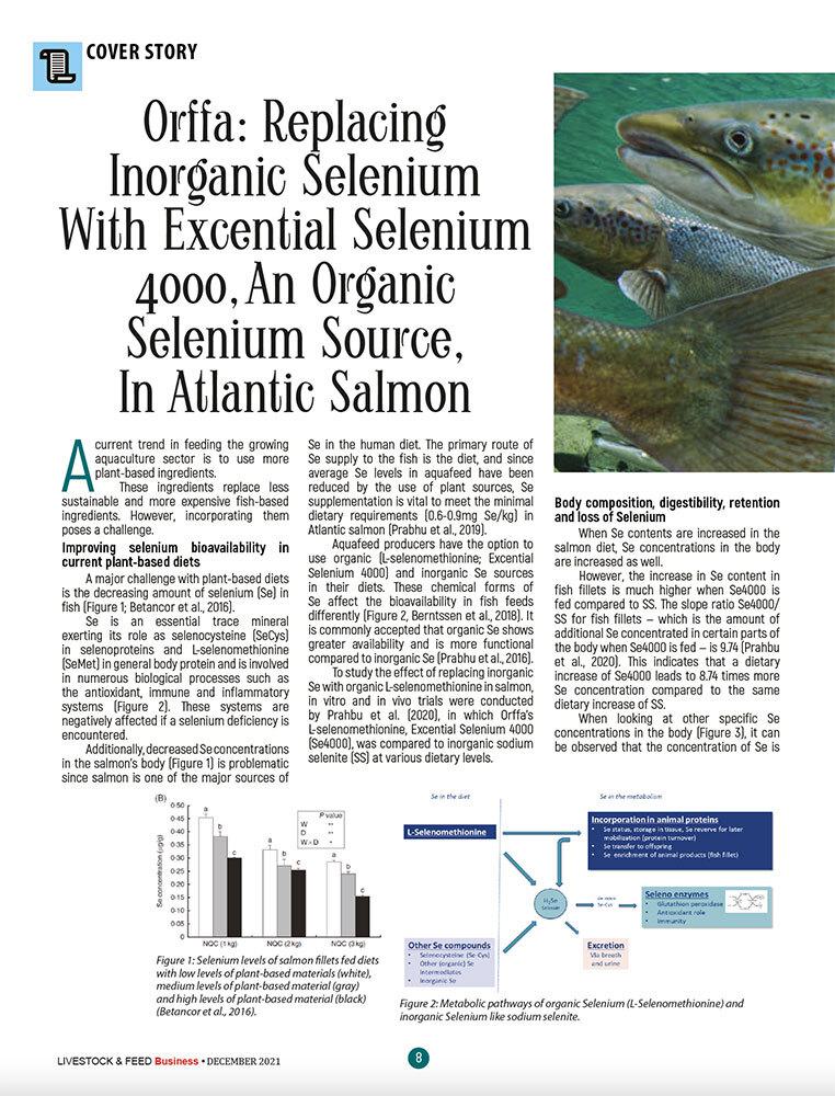 Selenium (Se) has been added to feed for many years. It is well known that global Se levels can be very low in soils and consequently in feed materials as well. In order to prevent Se deficiency and large economic losses, Se is added to the diet in different forms.17239826-48f3-451a-9339-7f1389a1d014, e110f00c-e8de-473c-9311-14c7516c6d0a,6a8415ac-c669-4253-a1a7-ba3d5d7872f1,96b0fedb-74b2-4bf5-87ea-3759b48f4217,0488eb96-b937-4f4b-af7d-6736cd38203f,c38f462e-3e5d-4b86-88f4-16cd48c1a5c0,726155a2-e68c-47a8-a221-7a7ff83773e5 11174f0e-2503-4011-83f9-3d4c7ff91e3d 677dbd38-0773-44d8-aa65-d2106819dd4e11174f0e-2503-4011-83f9-3d4c7ff91e3d201902012019 -