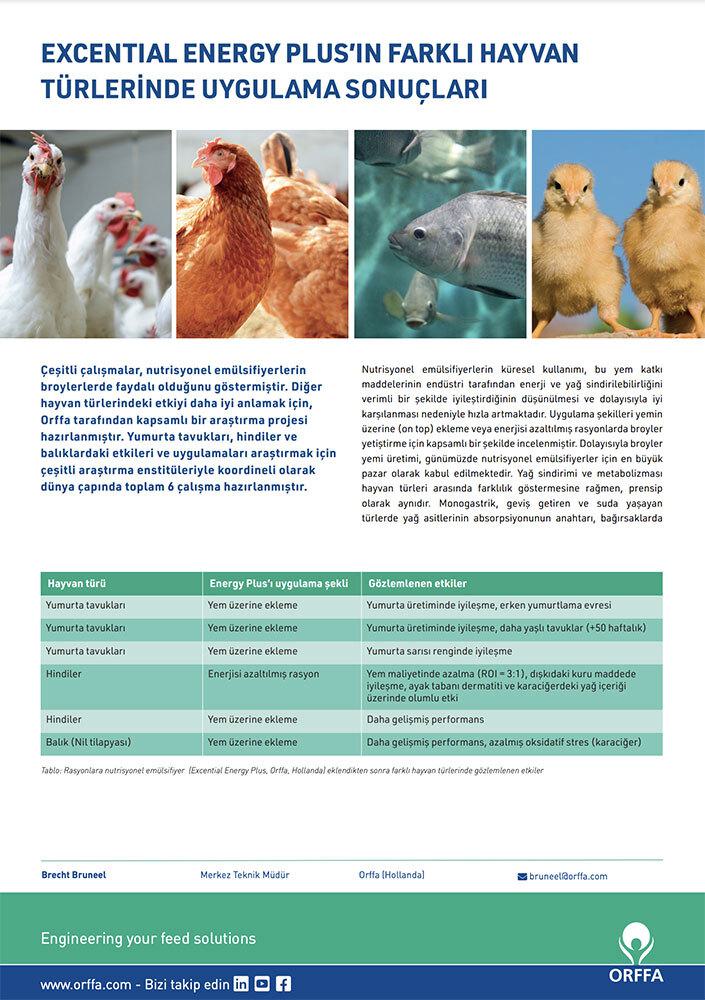 Çeşitli çalışmalar, nutrisyonel emülsifiyerlerin broylerlerde faydalı olduğunu göstermiştir. Diğer hayvan türlerindeki etkiyi daha iyi anlamak için, Orffa tarafından kapsamlı bir araştırma projesi hazırlanmıştır.75668571-875d-4f33-ae60-582bef77df3b, e110f00c-e8de-473c-9311-14c7516c6d0a,96b0fedb-74b2-4bf5-87ea-3759b48f4217 edb4ae6c-e790-4e64-9a55-f872c9e6281c 746d203e-ed75-4cca-81d3-855cee564df4edb4ae6c-e790-4e64-9a55-f872c9e6281c202206012022 -