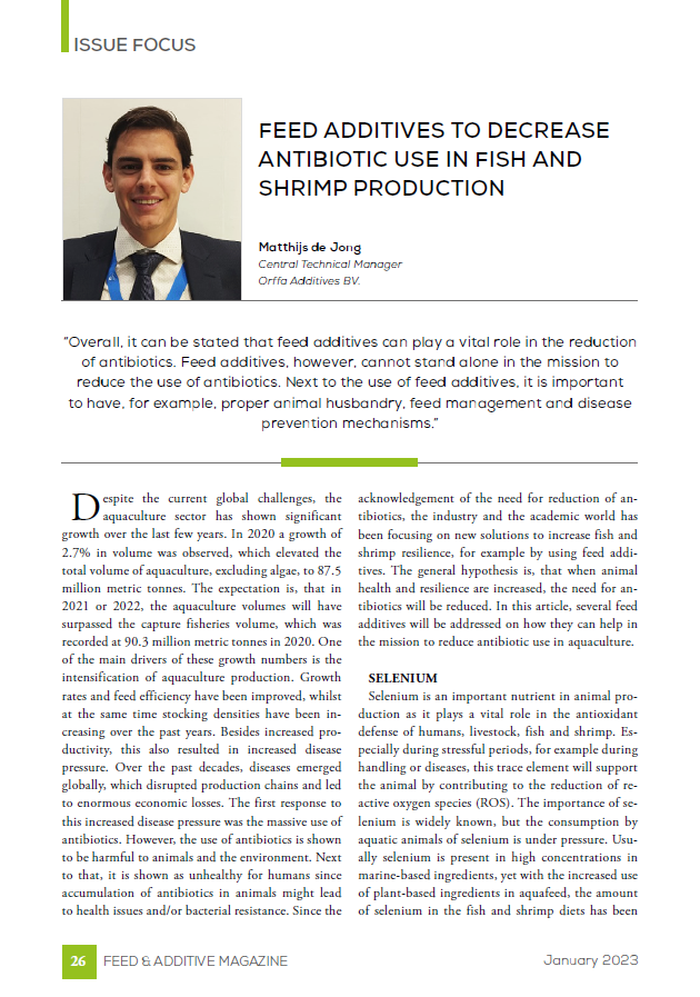 Overall, it can be stated that feed additives can play a vital role in the reduction of antibiotics. Feed additives, however, cannot stand alone in the mission to reduce the use of antibiotics.0e1d35c8-dda2-46c9-8fa1-b738e8fe1649, 96b0fedb-74b2-4bf5-87ea-3759b48f4217 af393e79-b464-4d5d-8120-a76ce682e7fa,46dfa1b8-3547-4dc1-8395-d7aa6000c08c,11174f0e-2503-4011-83f9-3d4c7ff91e3d 677dbd38-0773-44d8-aa65-d2106819dd4eaf393e79-b464-4d5d-8120-a76ce682e7fa,46dfa1b8-3547-4dc1-8395-d7aa6000c08c,11174f0e-2503-4011-83f9-3d4c7ff91e3d202301192023 -