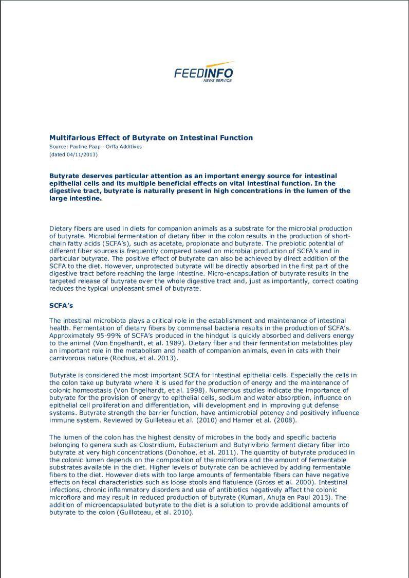 Butyrate deserves particular attention as an important energy source for intestinal epithelial cells and its multiple beneficial effects on vital intestinal function.0e1d35c8-dda2-46c9-8fa1-b738e8fe1649, c38f462e-3e5d-4b86-88f4-16cd48c1a5c0 af393e79-b464-4d5d-8120-a76ce682e7fa 677dbd38-0773-44d8-aa65-d2106819dd4eaf393e79-b464-4d5d-8120-a76ce682e7fa201311012013 -