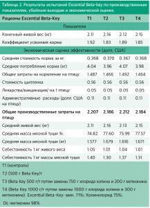 • Наилучшие хозяйственные результаты (таблица 2) были достигнуты при дополнительном добавлении бетаина (рацион 2). Инвестиции в размере 0,002 долл. США/кг корма позволили сэкономить 7% производственных затрат на массу мясной туши. Замена определенных уровней холина и метионина дала хорошие экономические результаты.