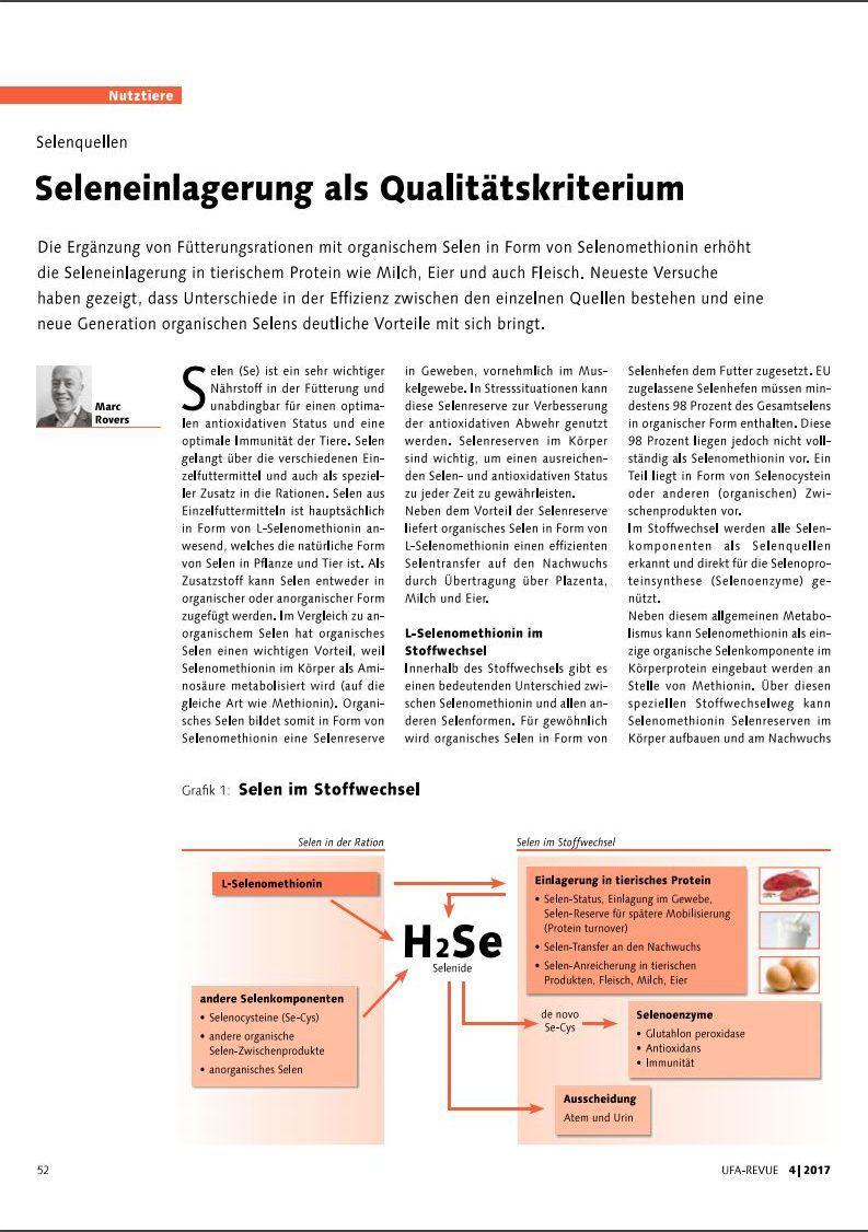 Die Ergänzung von Fütterungsrationen mit organischem Selen in Form von Selenomethionin erhöht die Seleneinlagerung in tierischem Protein wie Milch, Eier und auch Fleisch.17239826-48f3-451a-9339-7f1389a1d014, e110f00c-e8de-473c-9311-14c7516c6d0a,6a8415ac-c669-4253-a1a7-ba3d5d7872f1,96b0fedb-74b2-4bf5-87ea-3759b48f4217,0488eb96-b937-4f4b-af7d-6736cd38203f,c38f462e-3e5d-4b86-88f4-16cd48c1a5c0,726155a2-e68c-47a8-a221-7a7ff83773e5 11174f0e-2503-4011-83f9-3d4c7ff91e3d 2e03145e-c8ef-42d7-857e-b6783a82e1f411174f0e-2503-4011-83f9-3d4c7ff91e3d201704012017 -