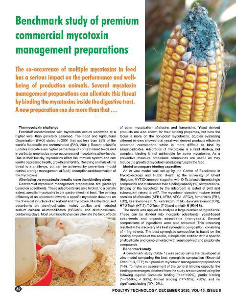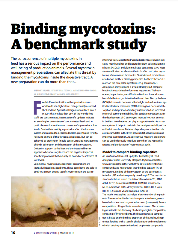 Complexed mycotoxin binders play an important role in the prevention of mycotoxicosis in livestock. A variety of clays, yeast-based organic components, other organic components and chemical substances can form ingredients for a mixture to relieve the animal of mycotoxic stress, by binding or otherwise.0e1d35c8-dda2-46c9-8fa1-b738e8fe1649, e110f00c-e8de-473c-9311-14c7516c6d0a,6a8415ac-c669-4253-a1a7-ba3d5d7872f1,96b0fedb-74b2-4bf5-87ea-3759b48f4217,0488eb96-b937-4f4b-af7d-6736cd38203f,c38f462e-3e5d-4b86-88f4-16cd48c1a5c0,726155a2-e68c-47a8-a221-7a7ff83773e5 9977cb92-e5fb-4009-a0d4-52ad667ee27c 677dbd38-0773-44d8-aa65-d2106819dd4e9977cb92-e5fb-4009-a0d4-52ad667ee27c201803012018 -