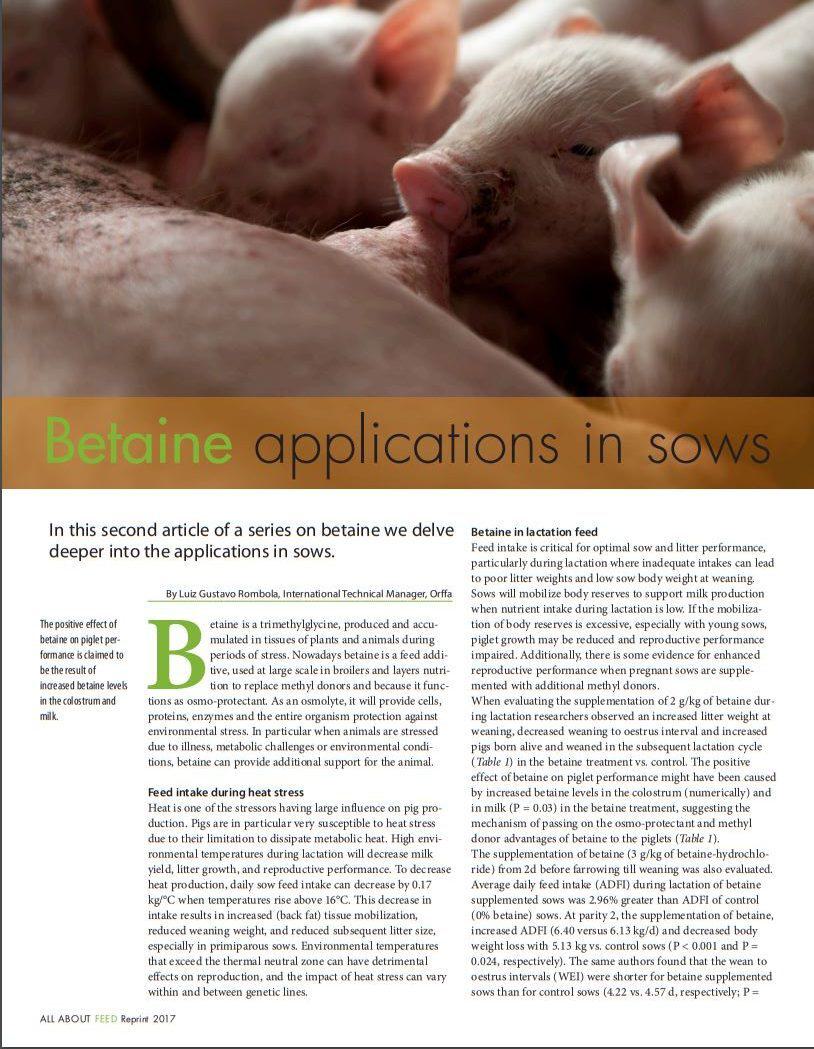 Betaine applications in sows
