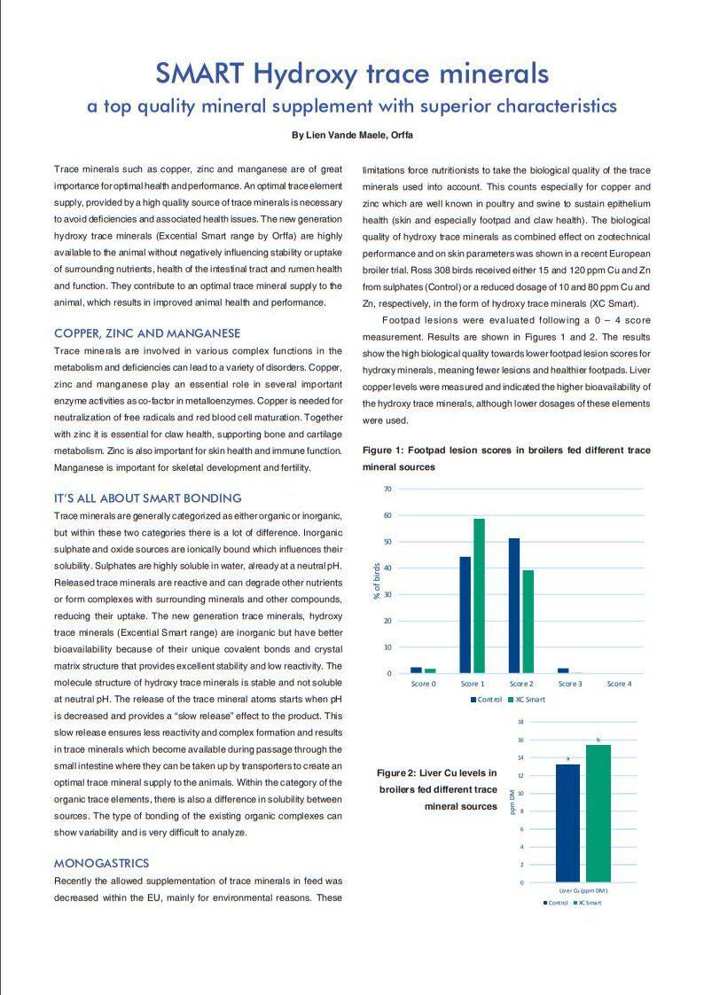 Hydroxy trace minerals (Excential Smart range by Orffa) are the best choice to optimize the trace mineral supply to your customers’ animals. They have a high mineral content compared to inorganic as well as organic minerals, are not hygroscopic and are dust-free enabling perfect flowability and are cost effective in use in feed, premix and mineral mix.17239826-48f3-451a-9339-7f1389a1d014, e110f00c-e8de-473c-9311-14c7516c6d0a,6a8415ac-c669-4253-a1a7-ba3d5d7872f1,96b0fedb-74b2-4bf5-87ea-3759b48f4217,0488eb96-b937-4f4b-af7d-6736cd38203f,c38f462e-3e5d-4b86-88f4-16cd48c1a5c0,726155a2-e68c-47a8-a221-7a7ff83773e5 e9f930e8-798d-4162-8651-998a3b419386 677dbd38-0773-44d8-aa65-d2106819dd4ee9f930e8-798d-4162-8651-998a3b419386202001012020 -