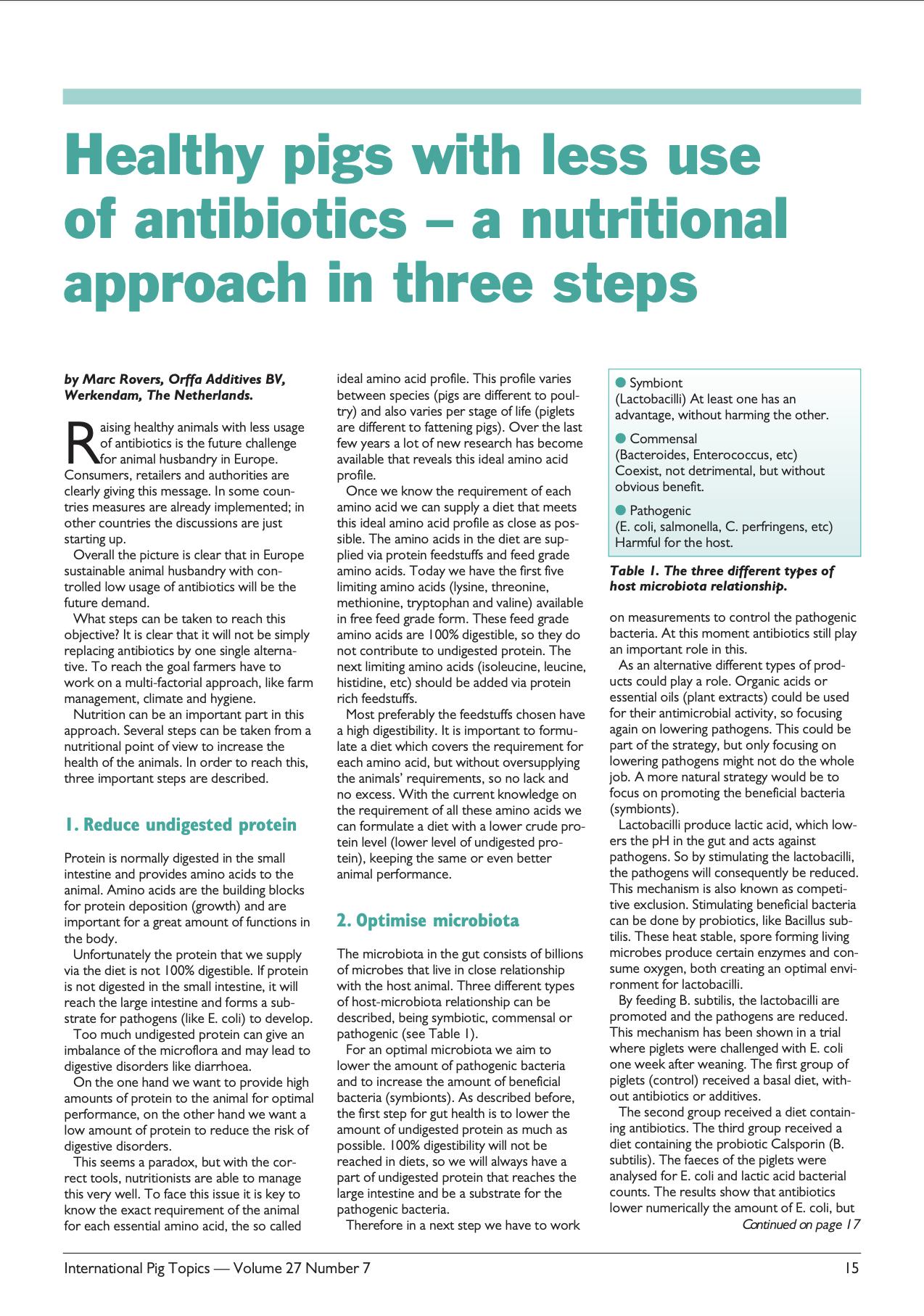 Healthy pigs with less use of antibiotics