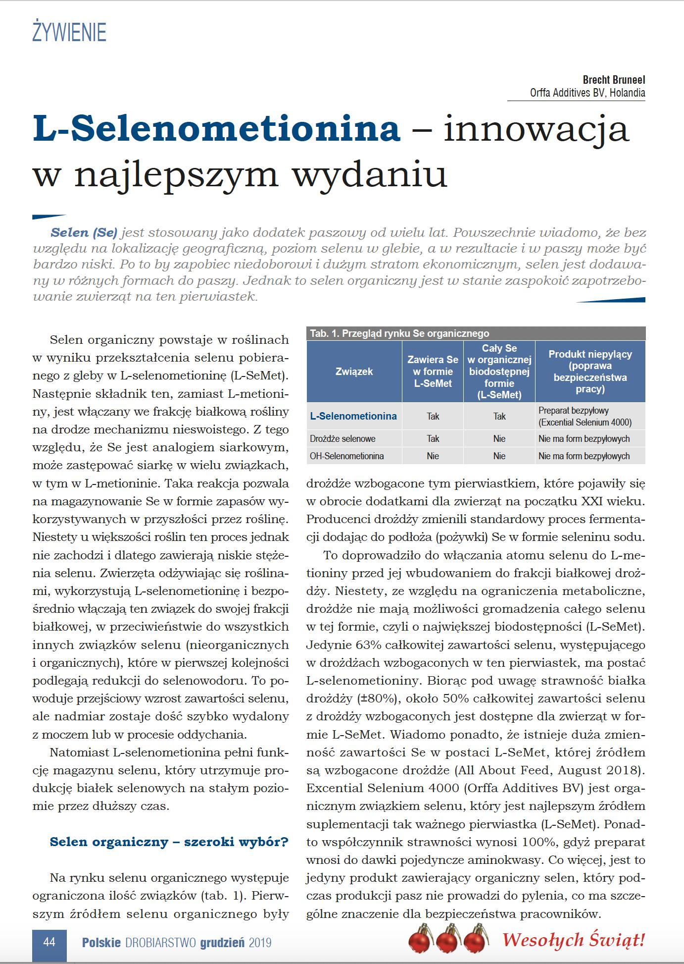 Selen (Se) jest stosowany jako dodatek paszowy od wielu lat. Powszechnie wiadomo, że bez względu na lokalizację geograficzną, poziom selenu w glebie, a w rezultacie i w paszy może być bardzo niski. Po to by zapobiec niedoborowi i dużym stratom ekonomicznym, selen jest dodawany w różnych formach do paszy. Jednak to selen organiczny jest w stanie zaspokoić zapotrzebowanie zwierząt na ten pierwiastek.17239826-48f3-451a-9339-7f1389a1d014, e110f00c-e8de-473c-9311-14c7516c6d0a,6a8415ac-c669-4253-a1a7-ba3d5d7872f1,96b0fedb-74b2-4bf5-87ea-3759b48f4217,0488eb96-b937-4f4b-af7d-6736cd38203f,c38f462e-3e5d-4b86-88f4-16cd48c1a5c0,726155a2-e68c-47a8-a221-7a7ff83773e5 11174f0e-2503-4011-83f9-3d4c7ff91e3d d2e6f803-5b2e-4d33-823e-ba2b6948d66311174f0e-2503-4011-83f9-3d4c7ff91e3d201912012019 -