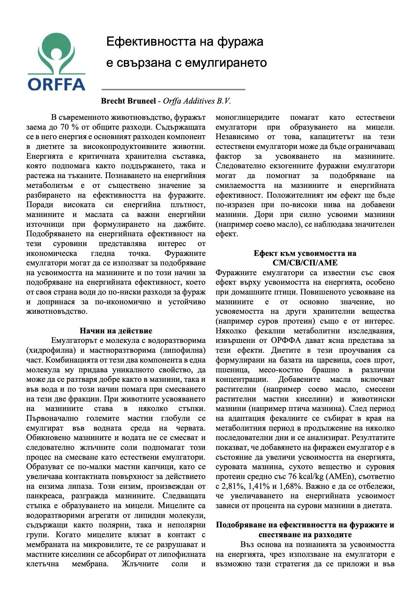 Ефективността на фуража е свързана с емулгирането