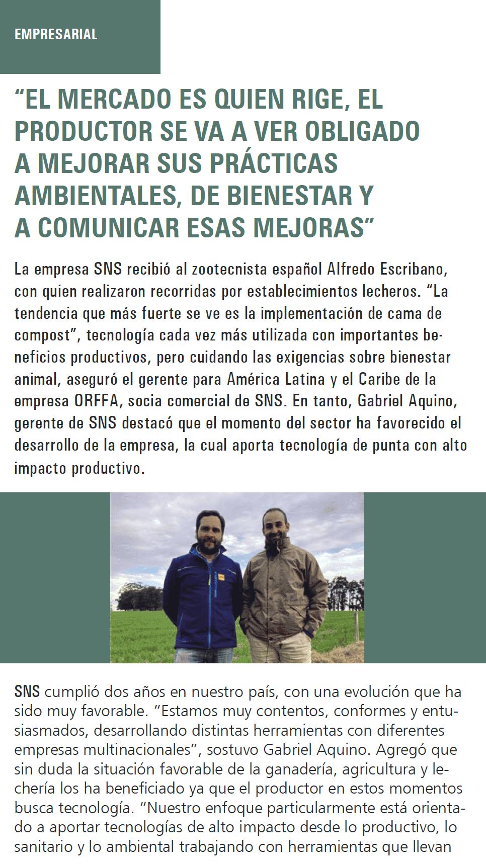 La empresa SNS recibió al zootecnista español Alfredo Escribano, con quien realizaron recorridas por establecimientos lecheros.e110f00c-e8de-473c-9311-14c7516c6d0a,6a8415ac-c669-4253-a1a7-ba3d5d7872f1,96b0fedb-74b2-4bf5-87ea-3759b48f4217,0488eb96-b937-4f4b-af7d-6736cd38203f,c38f462e-3e5d-4b86-88f4-16cd48c1a5c0,726155a2-e68c-47a8-a221-7a7ff83773e5 b132e5c7-4465-4e52-98bf-03ff5c9050cf202209302022 -