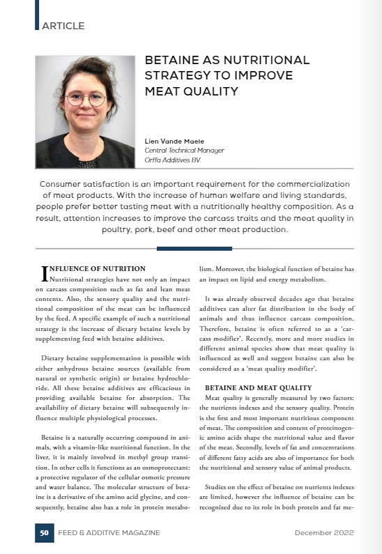Betaine in animal feed, more than a commodity