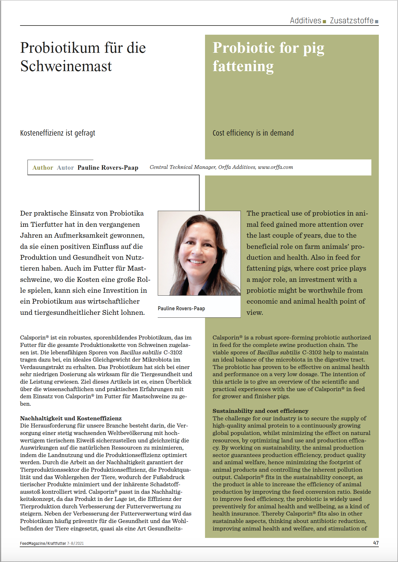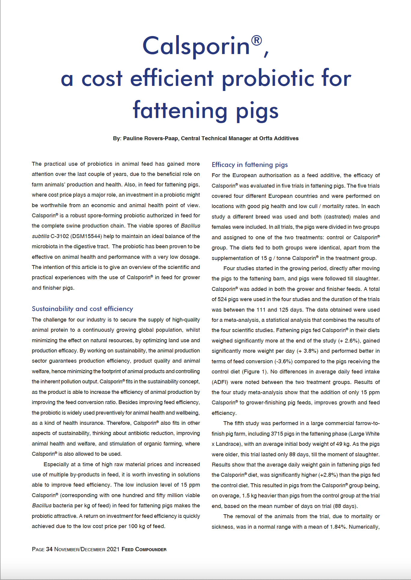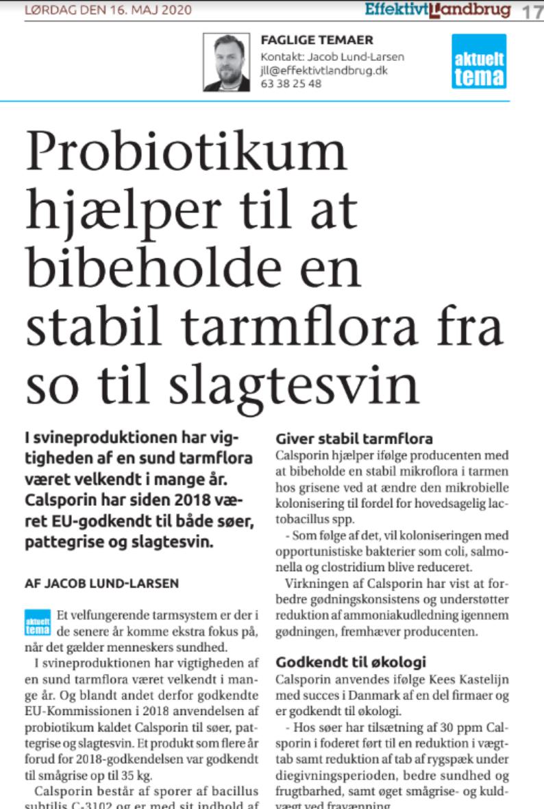 Calsporin®, a cost efficient probiotic for fattening pigs