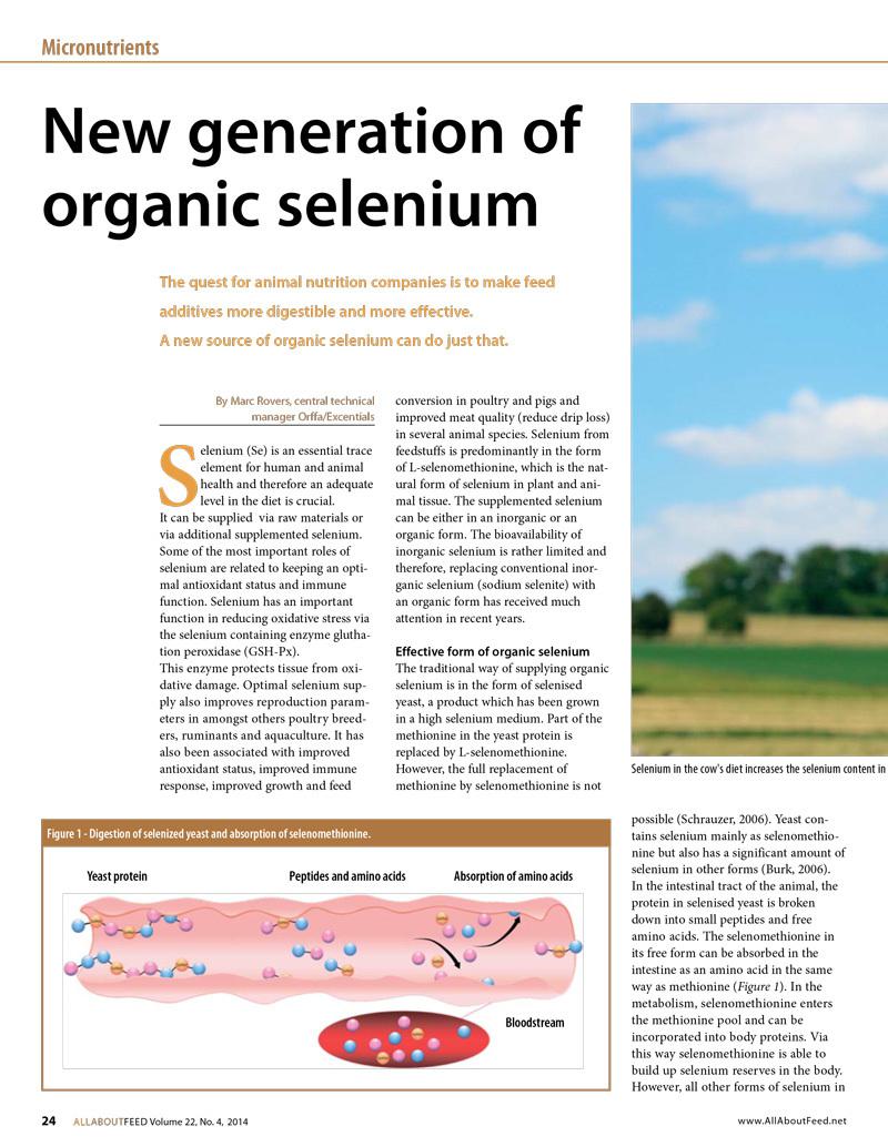 The quest for animal nutrition companies is to make feed additives more digestible and more effective. A new source of organic selenium can do just that.17239826-48f3-451a-9339-7f1389a1d014, e110f00c-e8de-473c-9311-14c7516c6d0a,6a8415ac-c669-4253-a1a7-ba3d5d7872f1,96b0fedb-74b2-4bf5-87ea-3759b48f4217,0488eb96-b937-4f4b-af7d-6736cd38203f,c38f462e-3e5d-4b86-88f4-16cd48c1a5c0,726155a2-e68c-47a8-a221-7a7ff83773e5 11174f0e-2503-4011-83f9-3d4c7ff91e3d 677dbd38-0773-44d8-aa65-d2106819dd4e11174f0e-2503-4011-83f9-3d4c7ff91e3d201401012014 -
